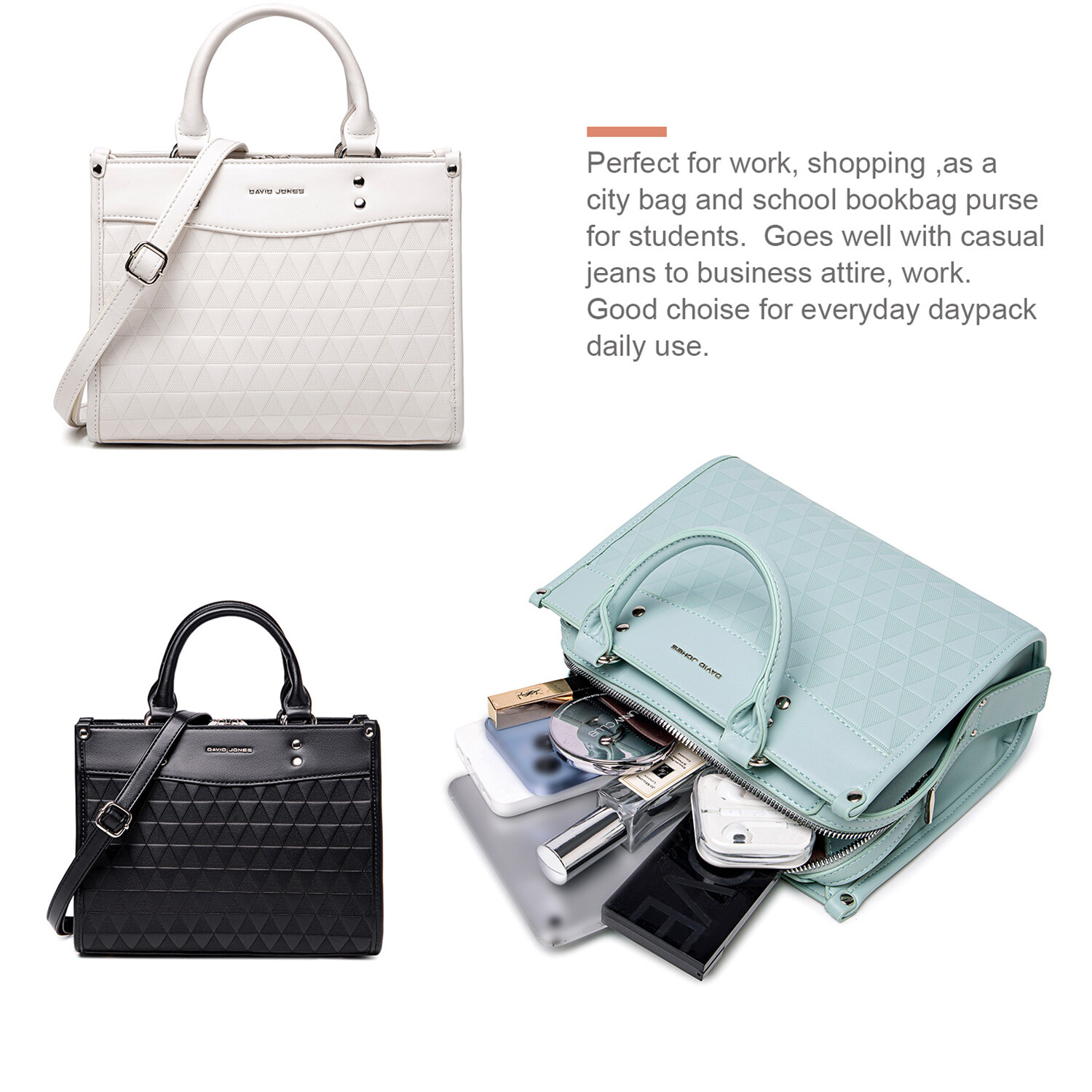 • DAVIDJONES , a brand comes from Paris since 1987.We are committed to provide our customer trendy and stylish women bags.Over the years, we have been selling to more than 100 countries at prices that make keeping up with seasonal styles a luxury within reach.DAVID JONES is the lifestyle brand for people who are Positive, Authentic, and Bursting with personality.We thank you for your great support.